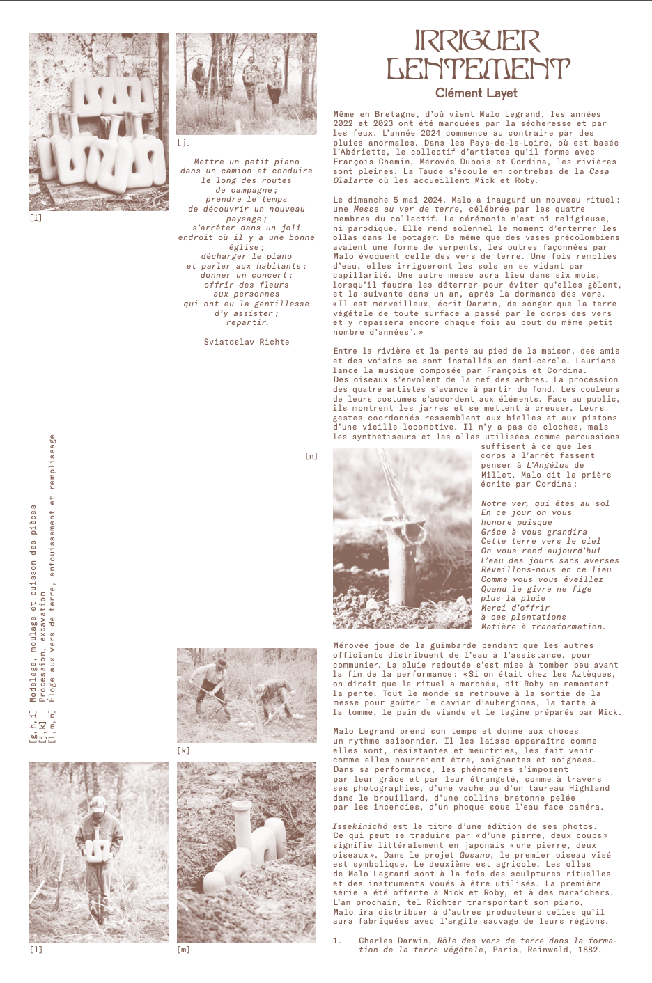 Au printemps 2024, j'ai créé une première série d’ollas destinées aux potagers de trois foyers : d’abord chez Jérôme et Sophie Chauvin, agriculteurs éleveurs caprin basé dans le village de Souvigne-sur-Sarthe village ; puis chez Michaël Harpin et Mylinh Guyot, amis maraîchers et producteurs de plantes médicinales dans la région ; et enfin chez Mick et Roby, hôtes des expérimentations du collectif de l’Aberiette depuis plusieurs années qui ont accueilli au printemps, la première cérémonie. L'une des spécificités des ollas c’est ces rituels annuels : elle sont mises en place au printemps pour la période de culture et d’éveil des vers ; puis elles doivent être retirées de la terre pour être nettoyées et entreposées -afin de les protéger du gel- durant le repos hivernal des cultures et des animaux.